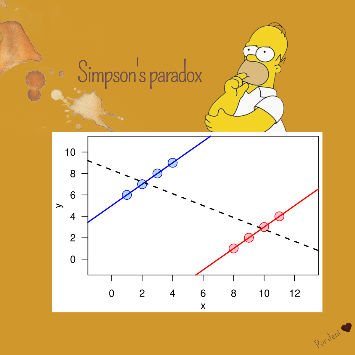 Simplificando, cada subgrupo pode apresentar uma relação positiva entre duas variáveis, mas quando os dados são agregados, a relação global torna-se negativa (ou vice-versa), porque a composição dos grupos influencia o resultado mais do que os valores individuais.