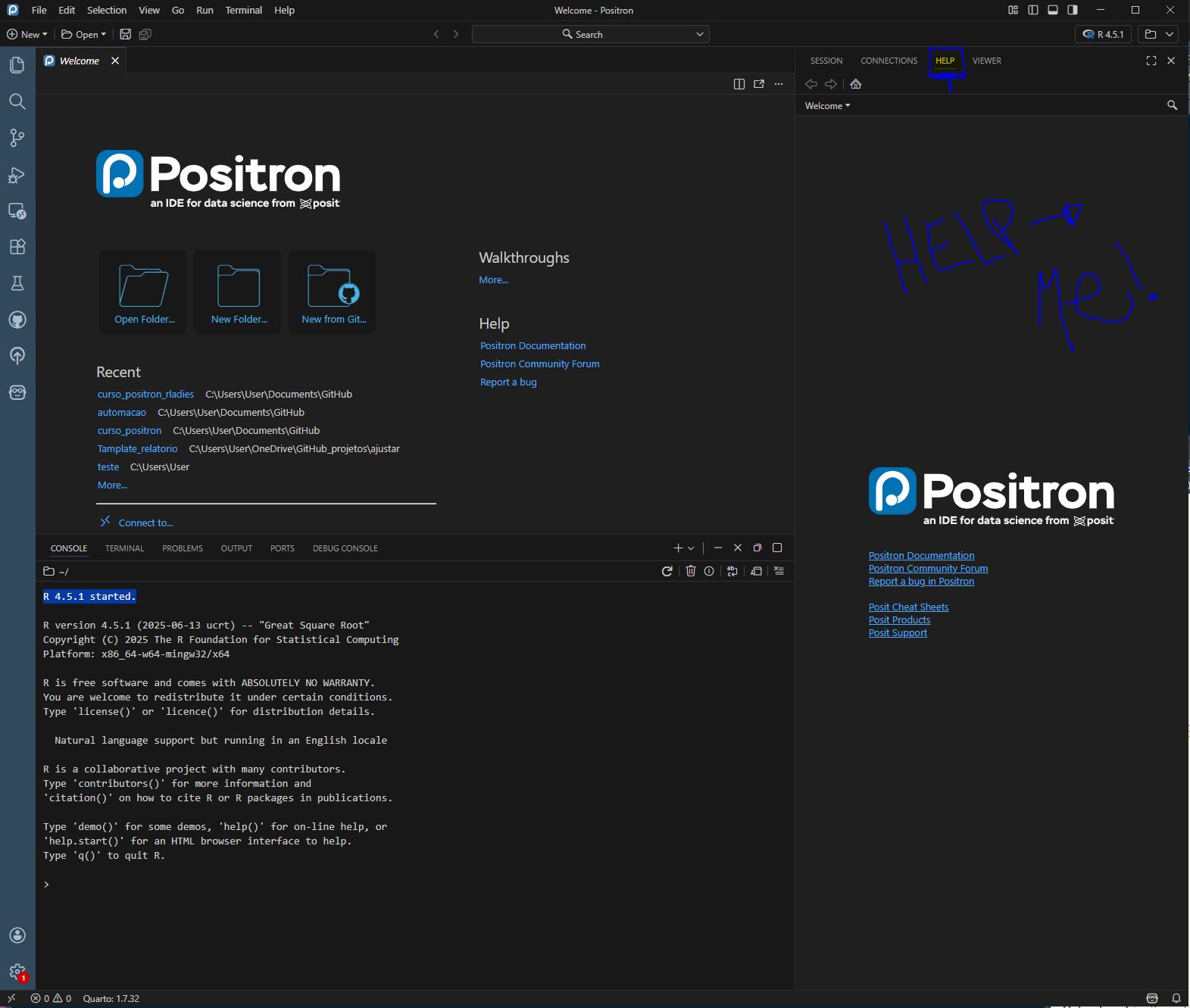 Algumas funcionalidades estão disponíveis no Positron, mas não no RStudio: